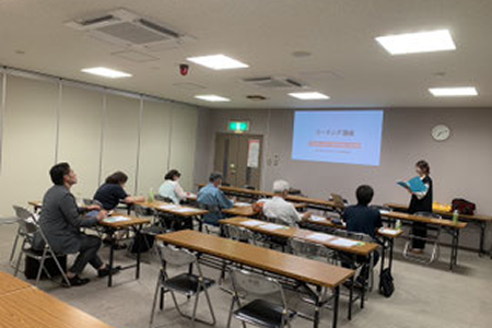諫早市の認定こども園にて社員研修の講師を務めました。その後は毎月、教職員向けにリーダー研修と個別面談を継続し、サポートをしています。