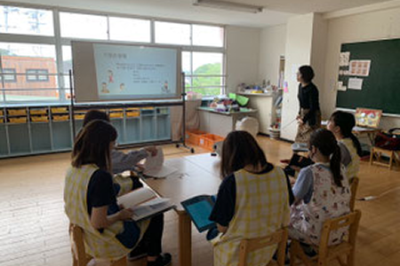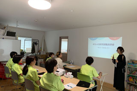 諫早市の認定こども園にて社員研修の講師を務めました。その後は毎月、個別面談を継続し、サポートをしています。